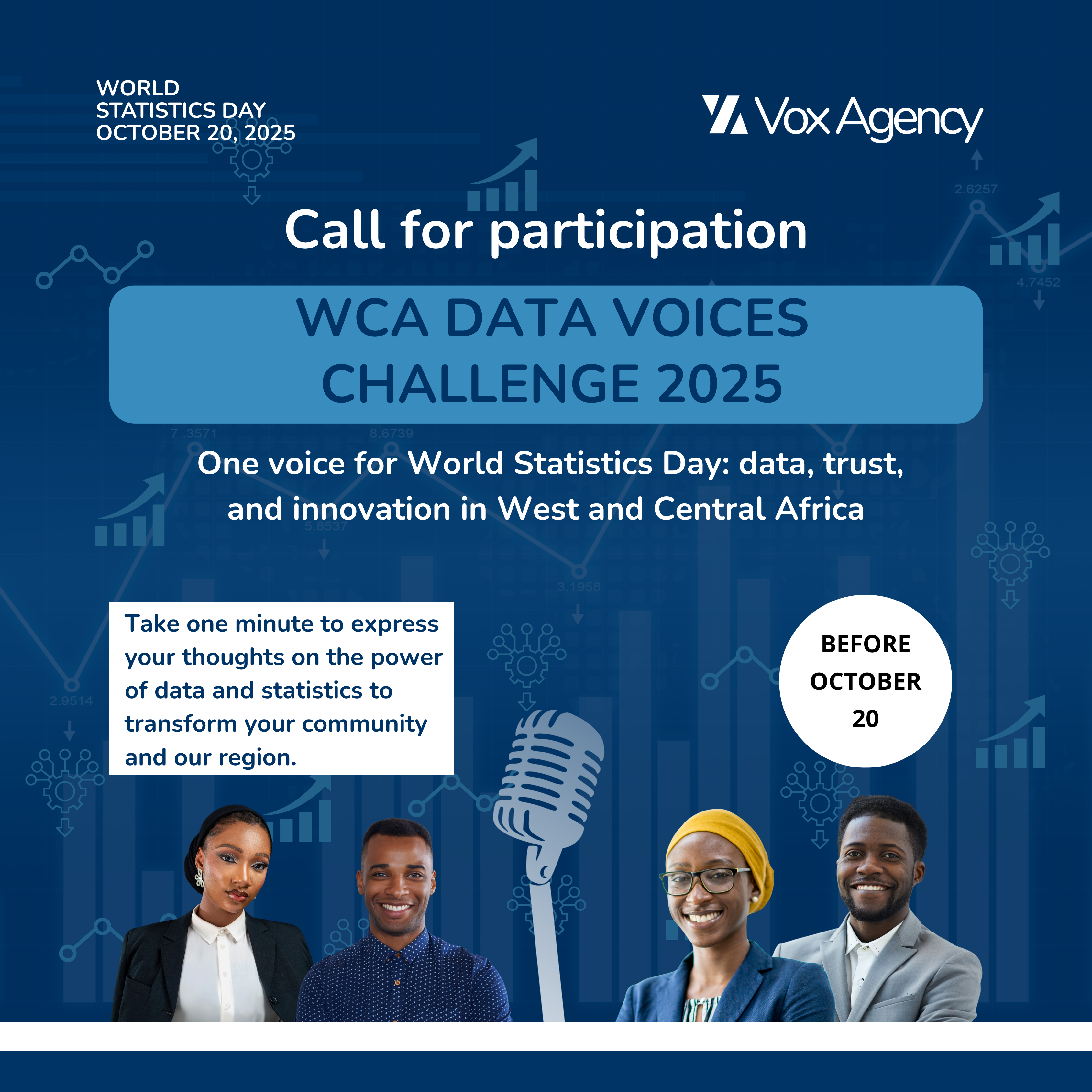 The WCA Data Voices Challenge 2025 is a regional video contest calling upon individuals to lend their voices to the importance of statistics and data-driven development in West and Central Africa. .